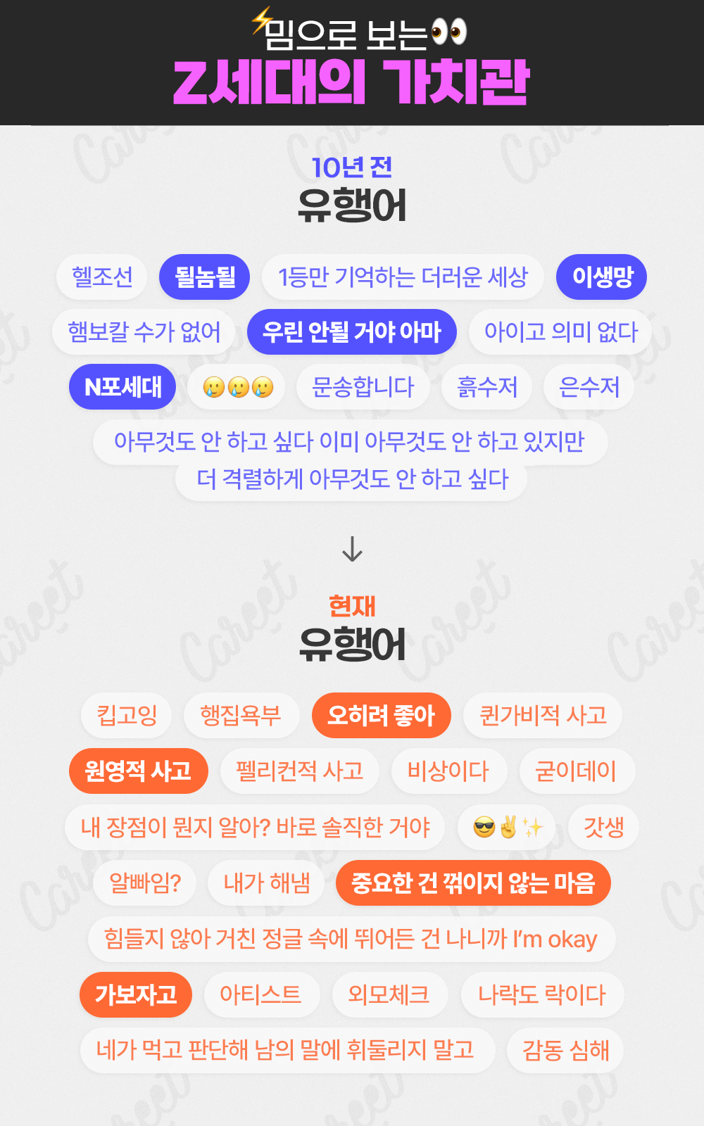 z 세대들의 가치관이 점점 긍정적인 언어로 바뀌고 있다고 함