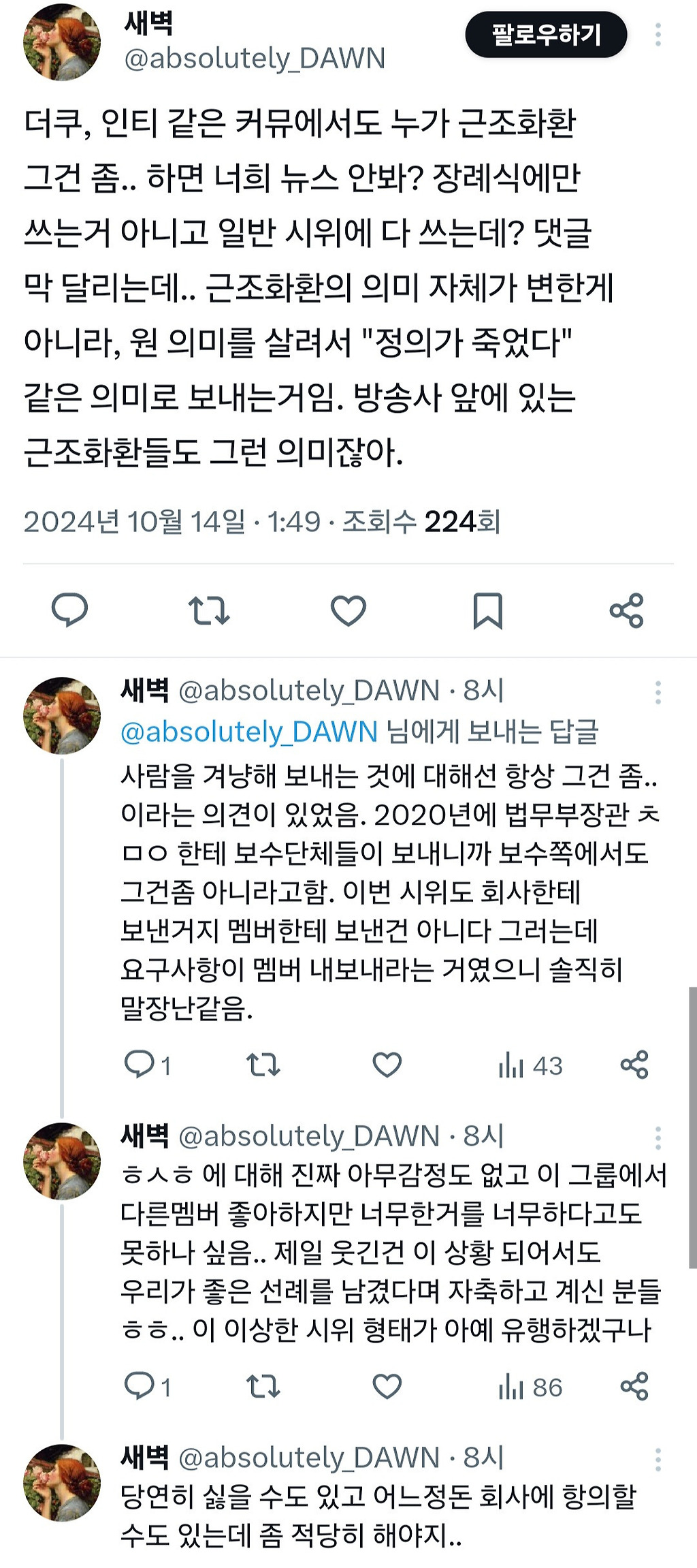 근조화환 시위 안좋게 보는 의견도 결코 소수가 아니라는 걸 얘기하고 싶어서 씀
