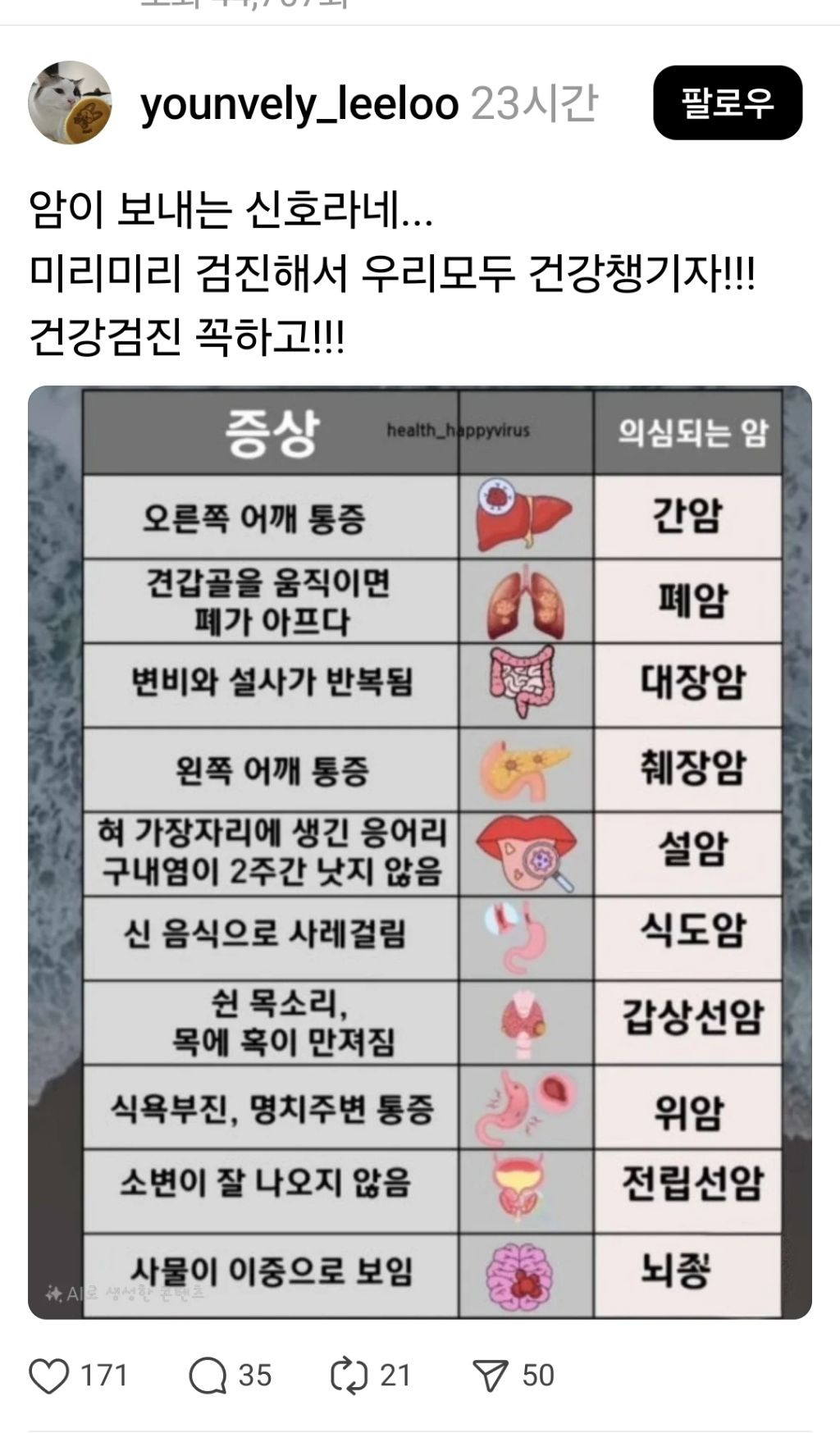 암이 보내는 신호랍니다