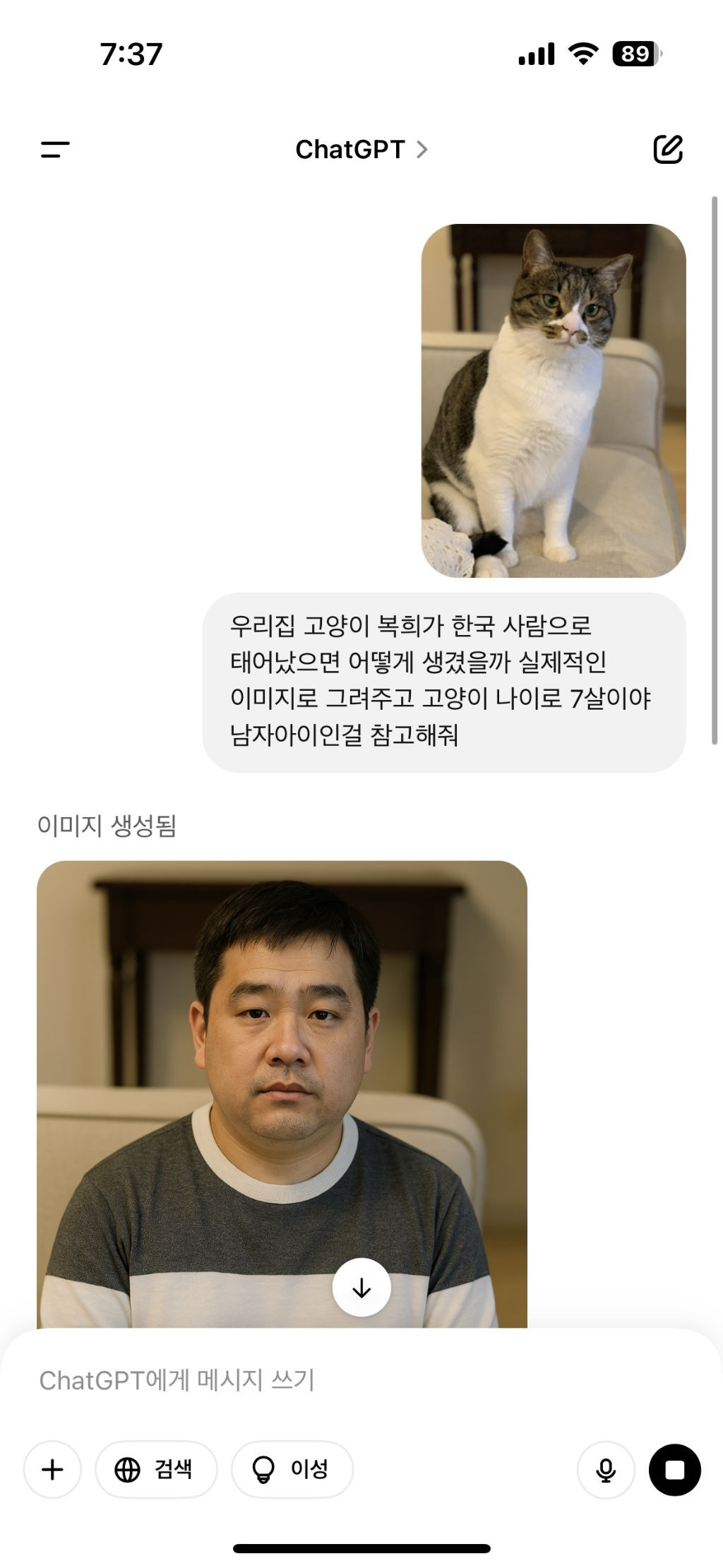 우리 고양이 챗지피티한테 사람처럼 그려달랬더니