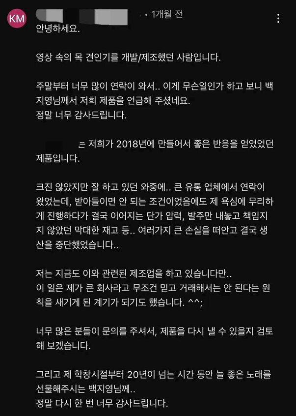 댓글 2사업파트너 잘못만나서 단종했다가 작년에 백지영 유튜브에서 소개되어 6차예약 까지감. 올해 쇼츠 또 터져서 5월 예약중인듯.... 중소기업 살리는 연예인 파워 제대로 보여줌... (선한 영향력 ㄷㄷ)