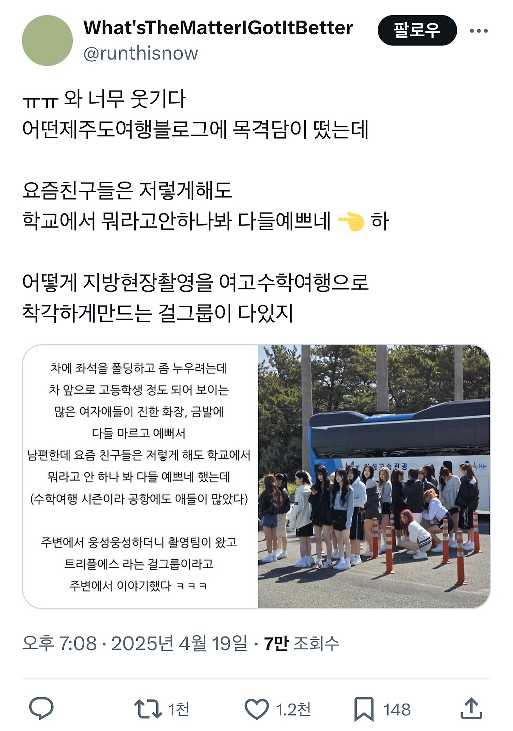 여고 수학여행이라고 목격담 뜬 걸그룹