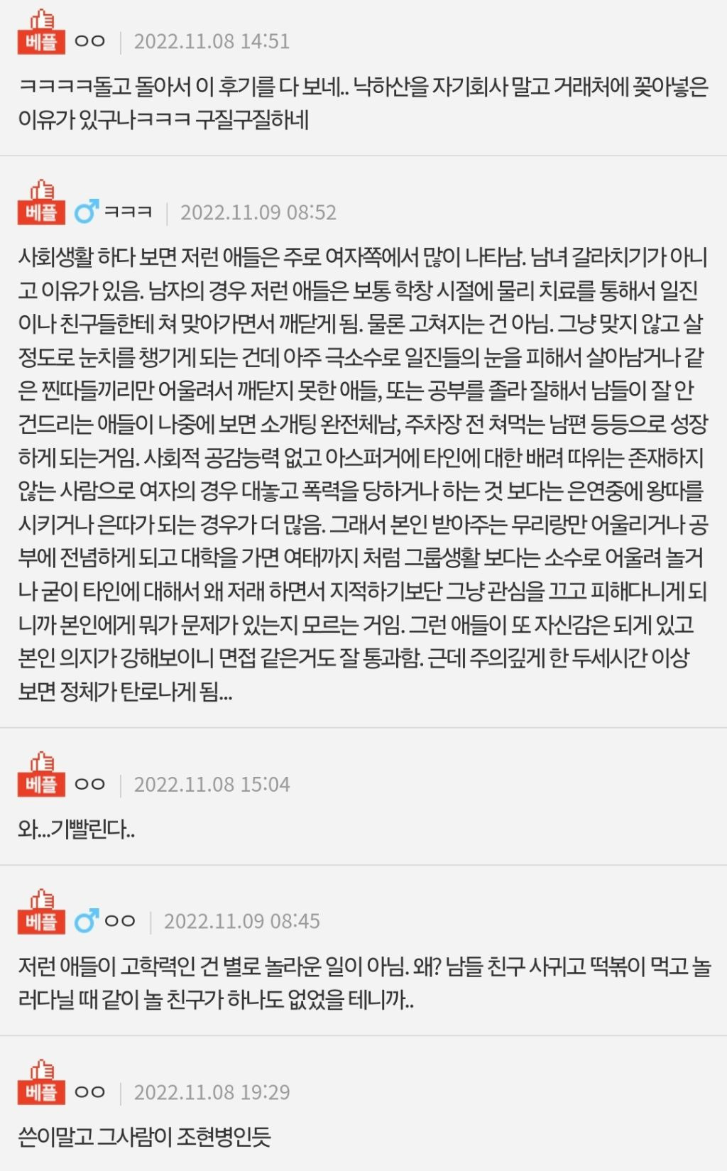 인서울 4년제를 졸업하시고 정신적으로 문제가 있거나 한 분이 아니었다는 점...