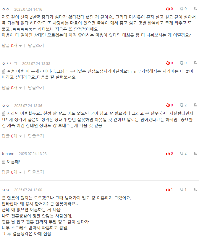 이런마음으로 살면 시기의 문제일뿐 언젠간 이혼하겠다 싶은 생각에 현재에 집중도 못하고 그냥 의미없이 살아가네요