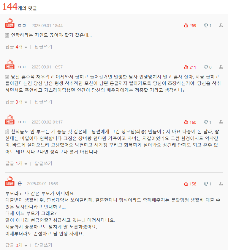 너가 생활비를 내는 것까지 이해해줄 수 있는 넉넉한 형편의 남자를 만나라 등의 말과 함께 반대가 극심했습니다.