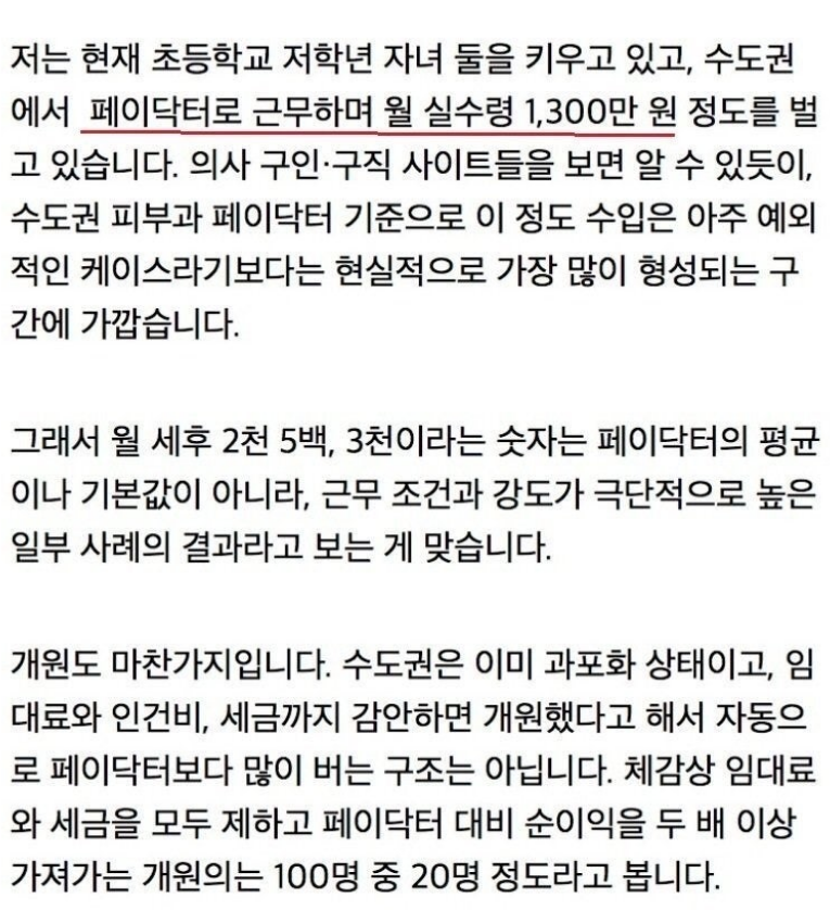 의사가 직접 말하는 페이닥터 수입에대한 진실이라는데..