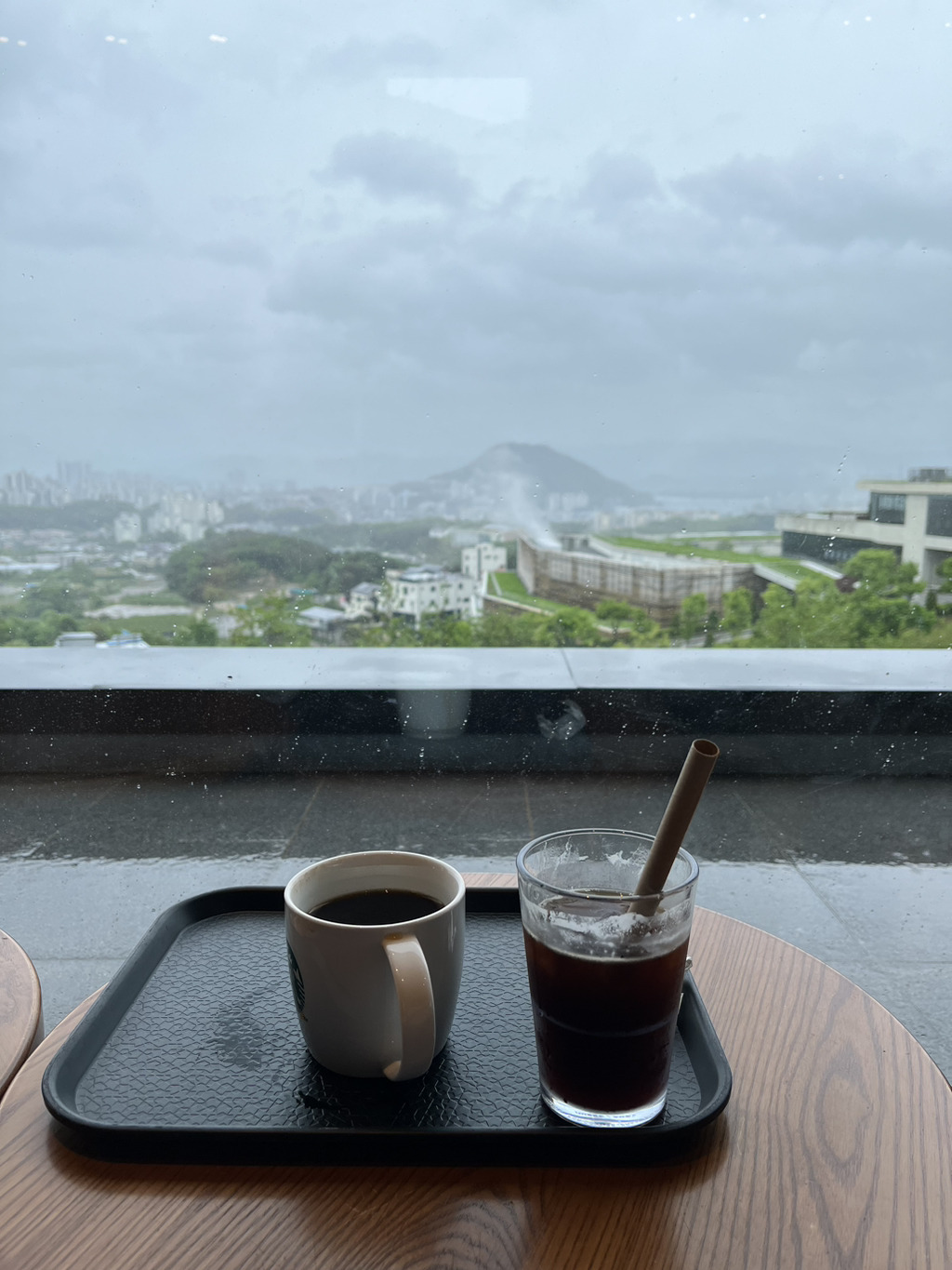 비가 추적추적 춘천 오니 조금 잦아들었는데 비는 역시 실내에서 봐야 함잠시 들른 스타벅스 전망이에요네이버 데이터센터각 옆 스벅