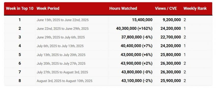 현재까지 누적 뷰수(넷플릭스 영화부분 역대 2위 달성)