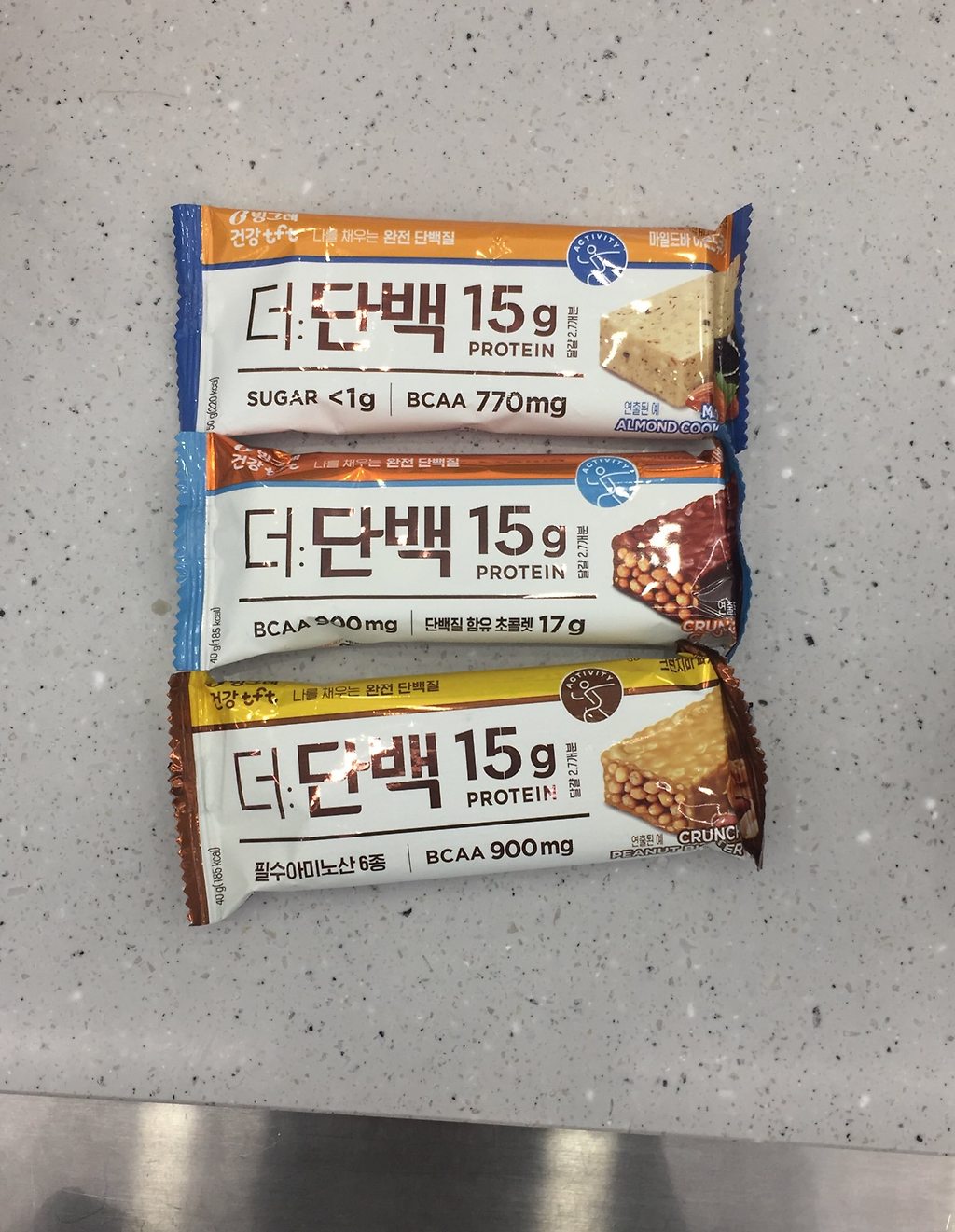 전 이거 사먹어봤는데 너무 맛있어요.. BSN 프로틴바(해외 제품) 너무 맛있고 성분좋은데 너무 비싸서 못샀거등요(12개에 4만원대..) 근데 이것두 크런치에 짱맛임! 이만한 칼로리에 단백질 15g되는 국내제품 별로 없어서 아쉬웠는데, 이거 맛도 좋고 괜찮네요!!