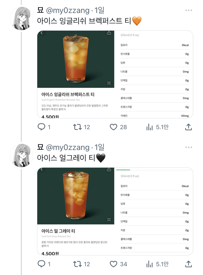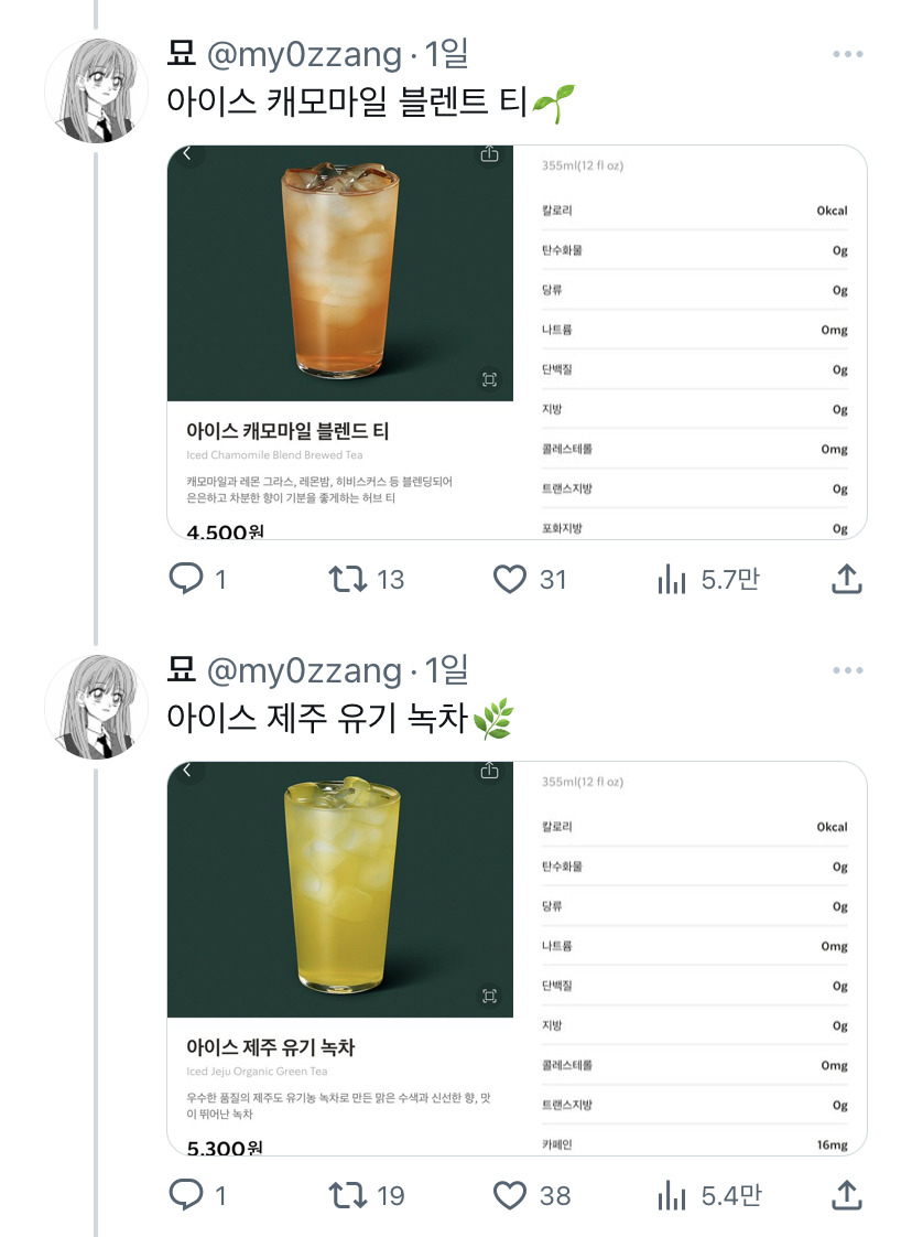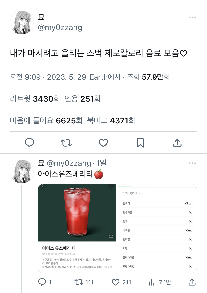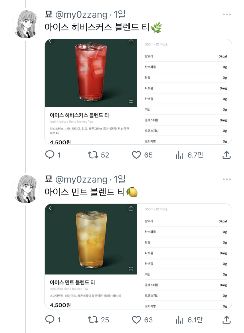 내가 마시려고 올리는 스벅 제로칼로리 음료 모음♡