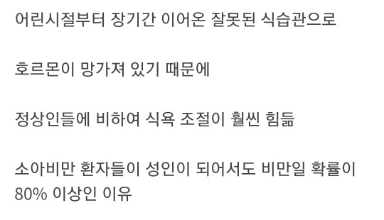 소아비만 환자들이 성인이 되어도 살 빼기 힘든 이유