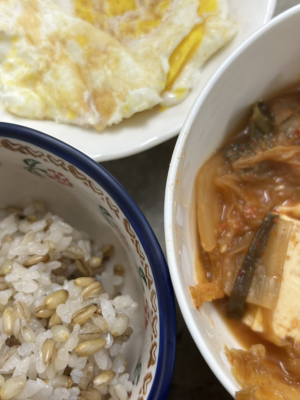 밥그릇 부터 친근하쥬 김칫국에 계란후라이 먹었습니다