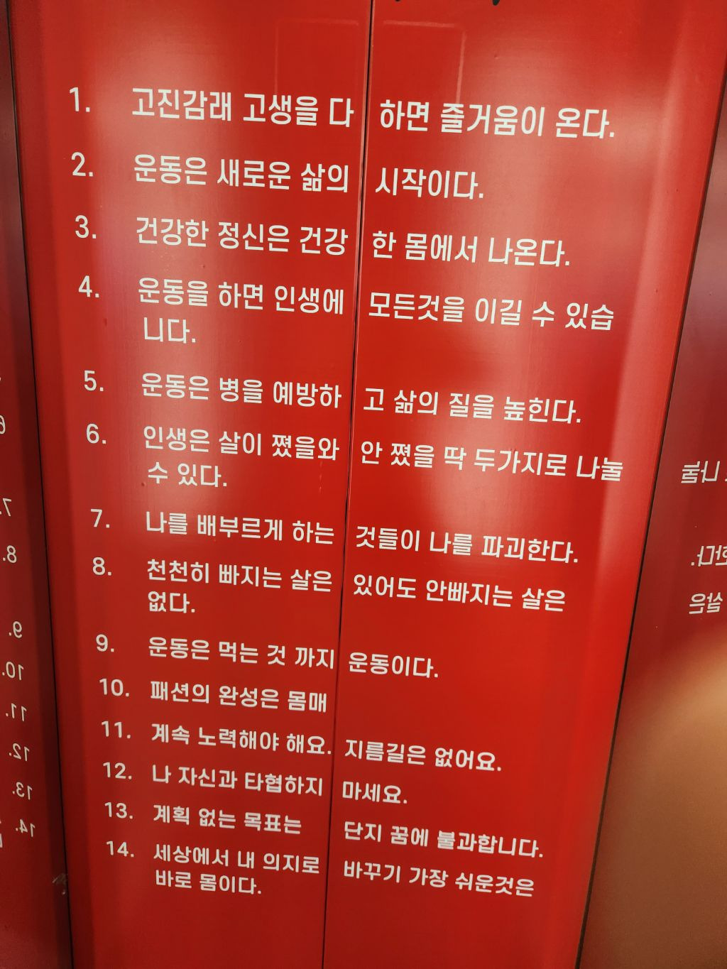 헬스장 엘리베이터에 붙어 있는 글귀.