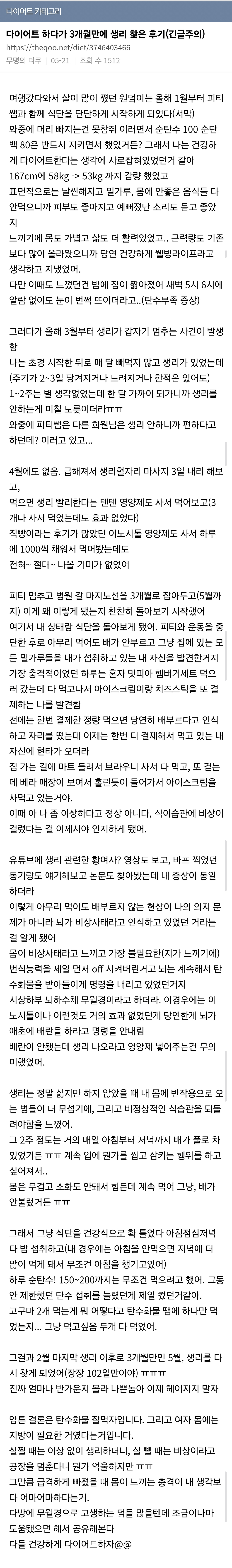 암튼 결론은 탄수화물 잘먹자입니다. 그리고 여자 몸에는 지방이 필요한 거였다는거입니다.