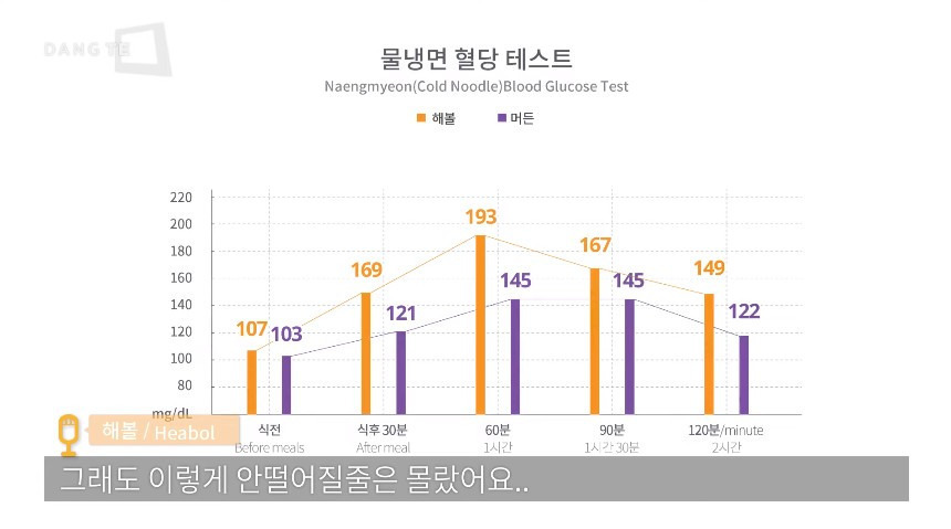오른쪽분들은 진쫄면을 먹어도 최고혈당 150을 안넘는 갓반인들임...결과는?