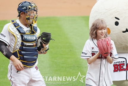 오늘자 윈터(김민정) 두산시구 기사사진모음jpg