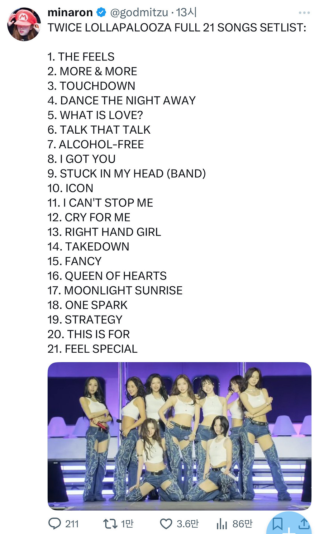 댓글 0룰라팔루자 시카고 트와이스 세트리스트