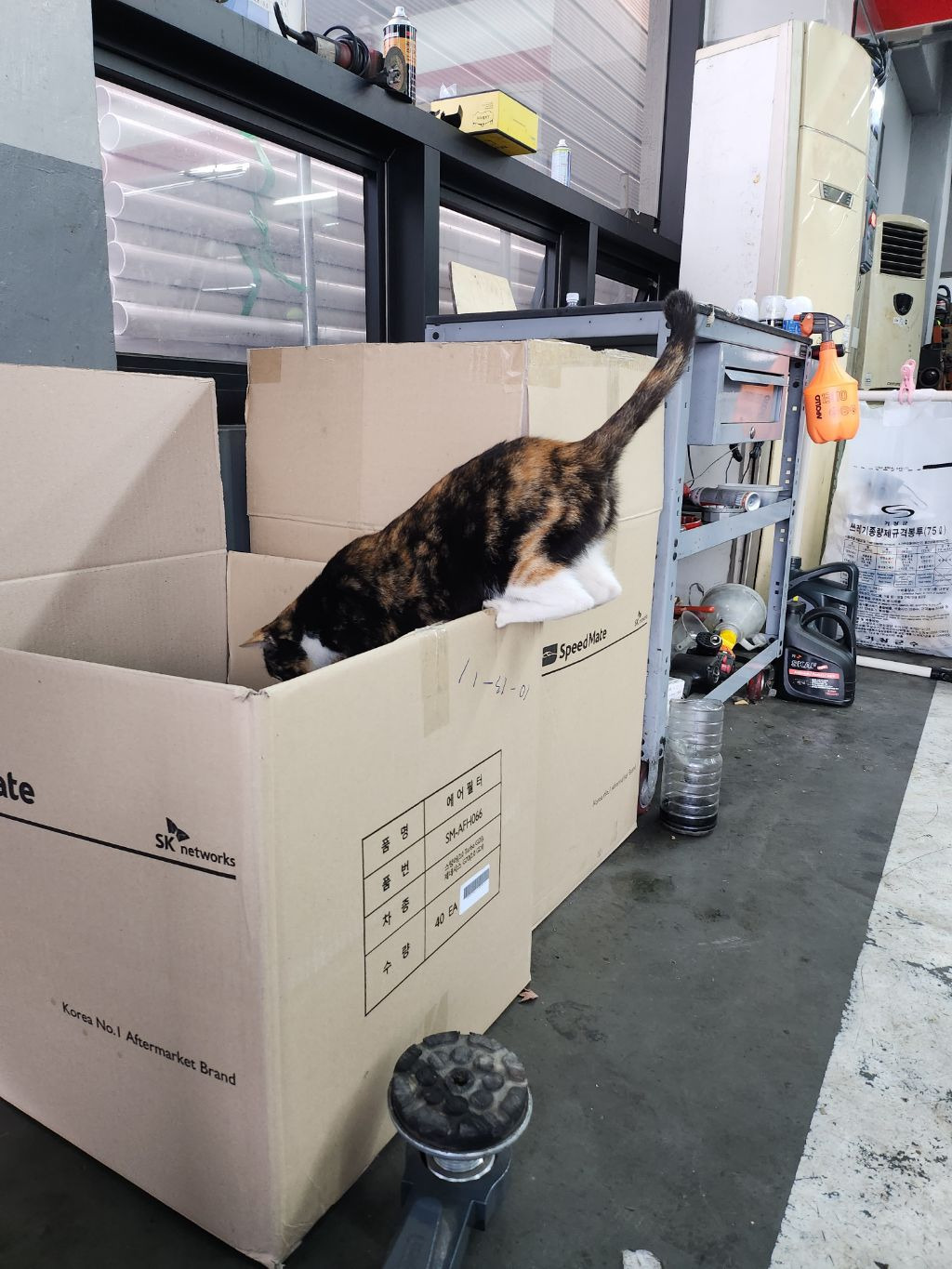 나중에 보니까 저 상자 안에있는 상자에 상반신만 들어가 있더라구요 ㅠㅠ 귀엽