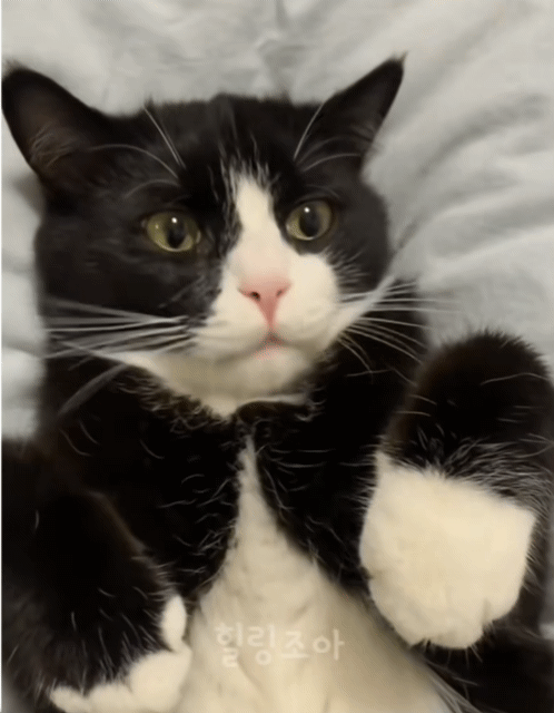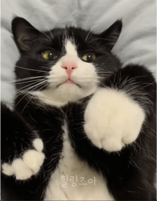 이마 만지니까 온갖 짜증 다 내는 고양이