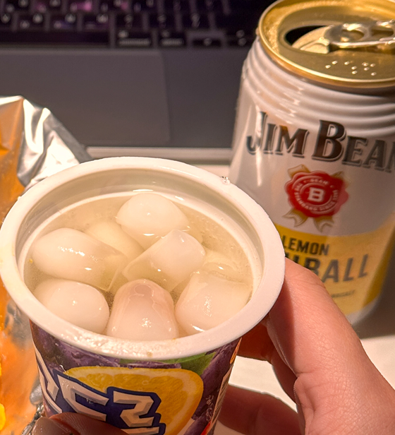 아이스가이 레몬 + 짐빔 레몬(아이스가이 자몽 + 짐빔 자몽은 별로라 함)웬만한 이자카야에서 먹던 하이볼 보다훨씬 맛나다구 함🤤