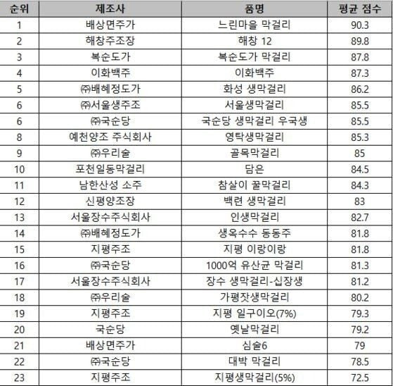 ‘ 대동여주도’의 이지민 대표, 에디터 이지혜(국가대표 전통주 소믈리에), 한국식품연구원의 김재호 기획본부장, 경기도농업기술원의 이대형 이학박사, 전통주 갤러리의 이현주 관장, ‘찾아가는 양조장’ 홍보대사인 개그맨 정준하씨(국가대표 전통주 소믈리에) 등 6명이 이마트 성수점에서 판매 중인 1,000~1만원대 생막걸리 23종에 대한 블라인드 테이스팅 결과