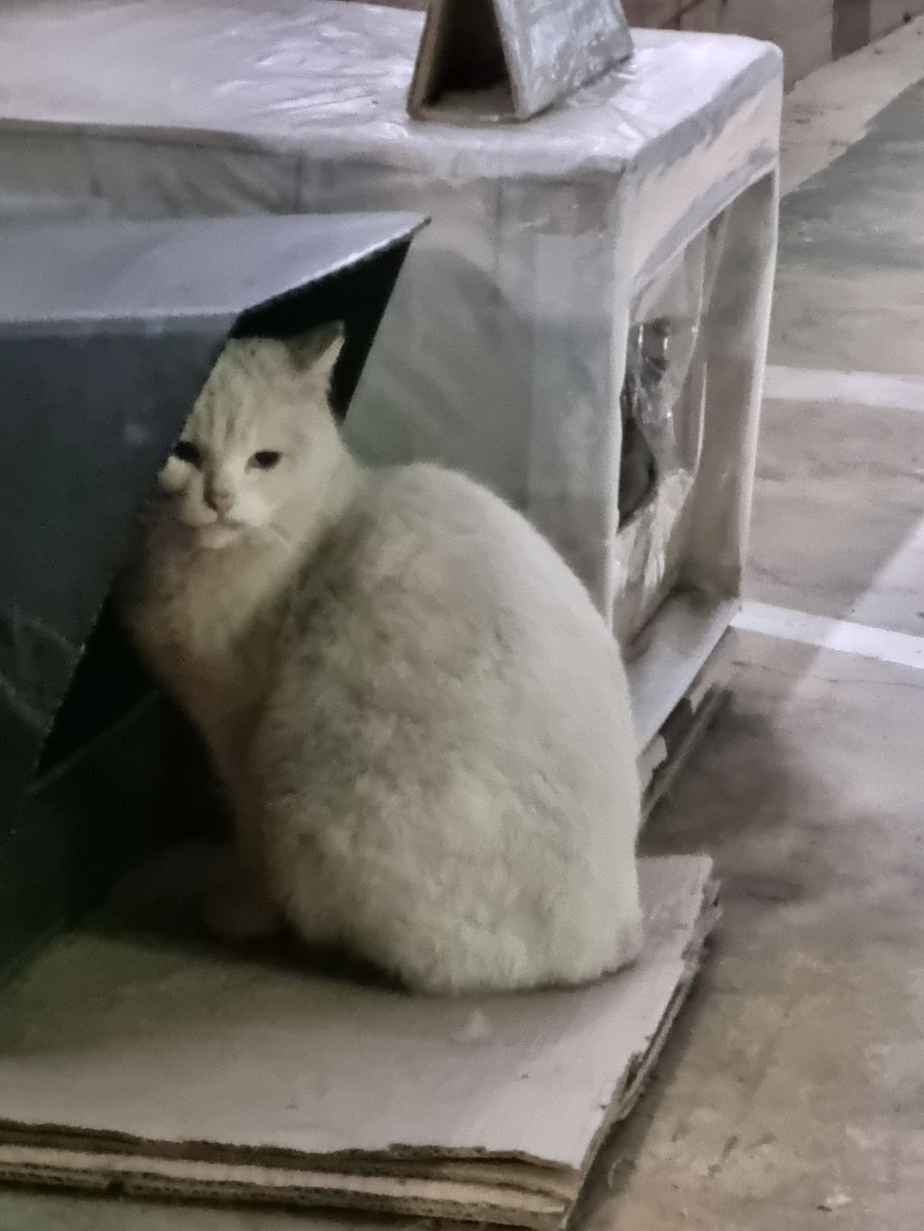 몇달전 주인으로부터 버림받은 흰냥이 😿지긍은 편의점에서 편히 쉬라고 집이랑 밥도 마련해주셨네야옹아 아프지만 말고 올 겨울 잘 이겨내줘서 고마워 ❤️