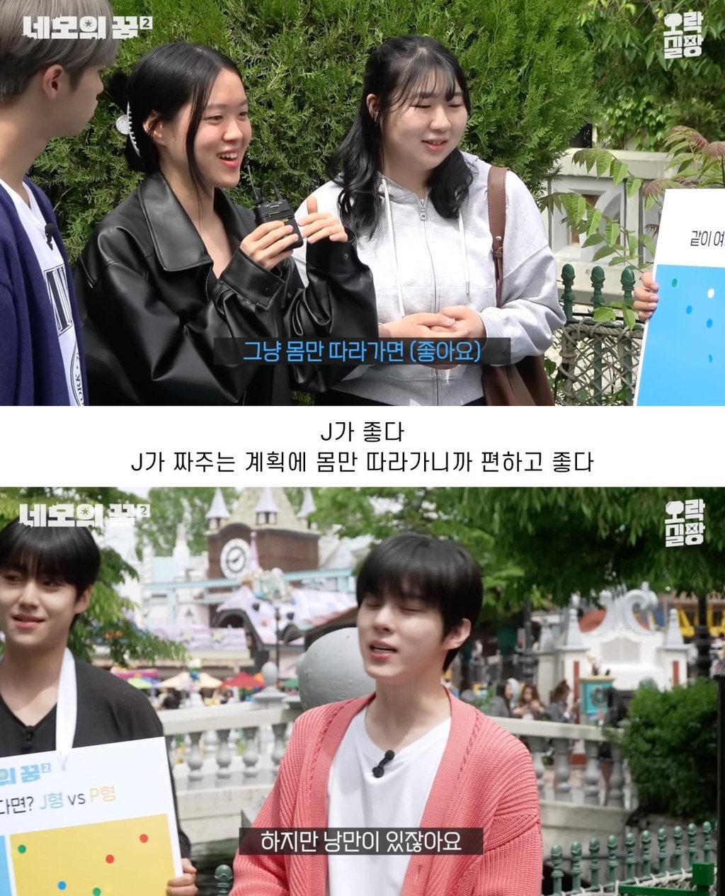 전 J인데 P는 가자는대로 다 따라와서 좋고 J는 계획짤 때 독박 아니라서 각각 좋긴 했음근데 둘 중 고르라면 J가 좀 더 편한거같기두