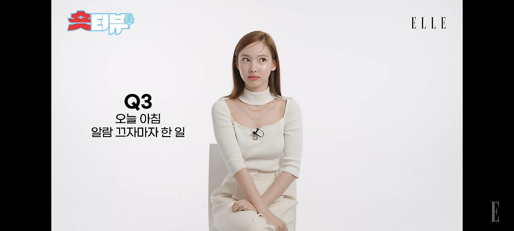 오늘 촬영을 위해 뭐했어요? -> 어제 팩했어요! 답변 하고 웃고 짧고 빠르게 넘어감