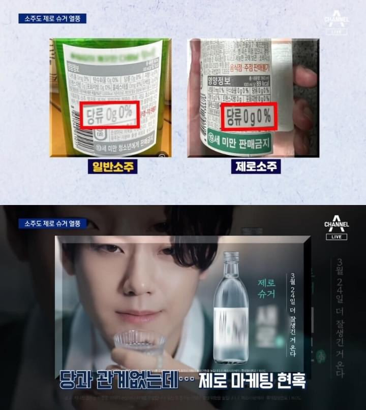 일반소주도 당류가참이슬 후레쉬, 좋은데이는 0.36g처음처럼은 0g 들어있다고 함= 큰 차이 없다는 소리