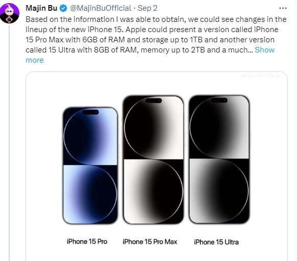 관련 업계에 따르면 유명 IT 팁스터(정보 유출자) ‘마진 부(Majin Bu)’는 자신의 엑스 계정에서 아이폰15에 ‘울트라’ 라인업이 추가될 수 있다고 밝혔다.