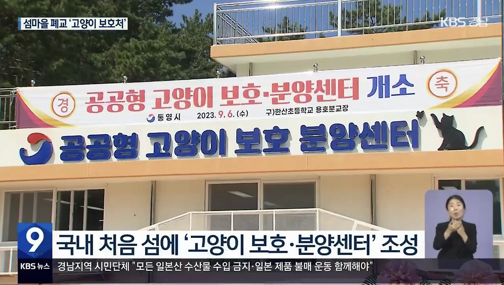 통영의 한 섬마을에서는 학생 수가 줄어 오래전 문을 닫은 폐교가 길고양이를 위한 보호, 분양 시설로 운영돼 관심을 끌고 있습니다.