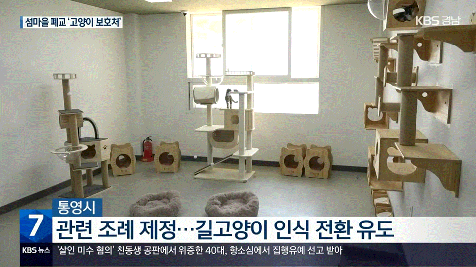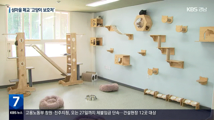 통영시는 학생 수 감소로 11년 전 문을 닫은 섬마을 폐교를 길고양이를 위한 보호실과 치료실이 갖춰진 시설로 꾸몄습니다.