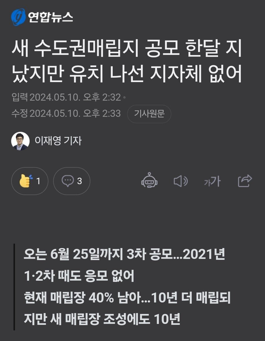 새 수도권매립지 공모 한달 지났지만 유치 나선 지자체 없어 | 연합뉴스