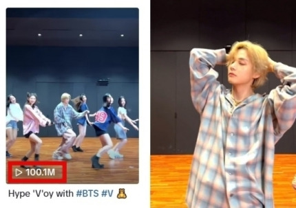 틱톡에 따르면, 방탄소년단(BTS) 뷔가 뉴진스와 함께한 '하입보이'(Hybe Boy) 챌린지 영상이 최근 1억 조회수를 돌파했다.