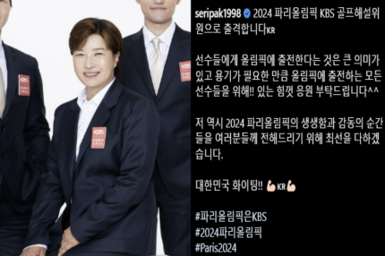 박세리는 어제(25일) 자신의 인스타그램에 "2024 파리 올림픽 KBS 골프 해설위원으로 출격합니다"라는 글을 올렸습니다.
