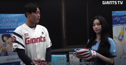 친언니가 롯데의 팬이라고 밝힌 카리나 "평소에 이렇게 해볼 기회가 없었는데, 시구를 하면서 운동하는 느낌도 들고, 스트레스도 풀리는 것 같고 좋은 경험이었다"고 소감을 전했다.