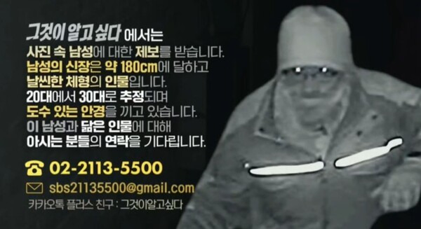 '그것이 알고 싶다'는 CCTV에 찍힌 용의자의 몽타주와 외적 특징을 상세히 공개했다. 용의자는 신장 약 180cm로 날씬한 체형을 가진 남성이며, 당시 20대 후반~30대 초반의 나이였던 것으로 추정됐다. 또한 도수가 있는 안경을 착용한 점도 드러났다.