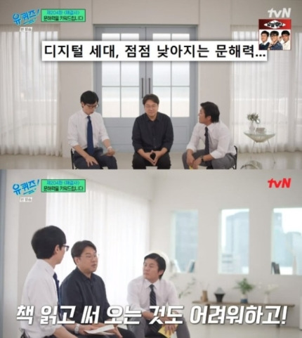 조 교수는 "영상으로 정보를 취하고, 글을 읽을 일이 없는 거다. 긴 글 읽는 거 어려워하고. 대학교에서도 논문 읽고 공부할 거라고 하면 표정이 안 좋아진다"라며 "학부모님들도 아이들에게 글과 책 읽으라고 하지만 가정통신문조차 안 읽는다"고 말했다.