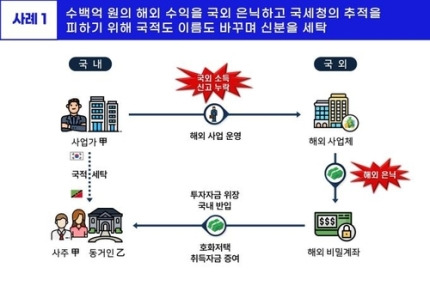 해외 미신고 사업으로 얻은 소득을 해외 비밀계좌에 은닉해온 B는 현지 투자 조건으로 시민권을 주는 이른바 '황금비자'를 통해 조세회피처로 알려진 국가의 국적을 취득했다.