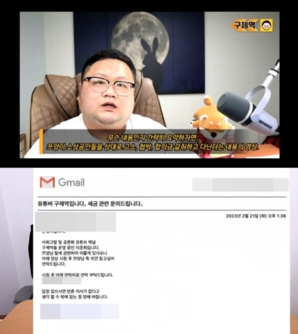 그는 "구제역은 메일에 이 영상 주소를 담아 보냈는데, 답장을 안하면 의견이 없는 걸로 알겠다고 무섭게 말했다"며 "제가 알리기 싫었던 이야기(탈세)라 직원들을 통해 연락했고, 직원들이 구제역을 만났다. 그후 원치 않는 계약서를 쓰고 5500만원을 줬다"고 밝혔다.