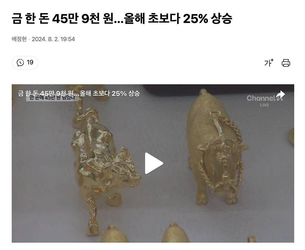 [앵커] 반면 안전자산인 금값은 나날이 오릅니다. 금 한 돈 가격이 어느새 45만 원을 넘었는데요. 올해 초보다 25%나 급등했습니다. 배정현 기자입니다. [기자] 서울 종로에 위치한 금 거래소