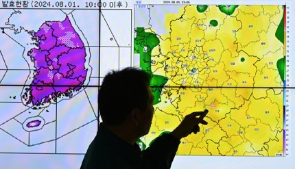현재 제주 산지를 제외한 전국 183개 특보 구역 중 182개 구역에 폭염 특보가 발효됐다. 내륙 지방을 중심으론 체감온도가 37도를 웃도는 지역이 많았다.