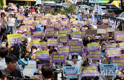 이나영 정의연 이사장은 "일본 정부는 인정과 사죄는커녕 전쟁범죄를 지우는 데 혈안이 돼 있다"면서 "끊임없이 그들이 자행한 반인도적 범죄행위를 부인하고 책임을 회피하며 피해자들을 모욕하고 있다"고 했다.