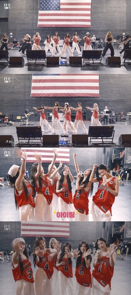 시카고를 대표하는 농구 팀의 유니폼을 무대 의상으로 입은 아이브는 각자의 개성을 살린 액세서리를 더해 스타일링을 완성했다.