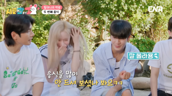 정동원과 윈터는 최근 방송한 ENA '시골에간도시Z'에서 시골 어르신들과 음식 이름 맞히기 게임에 나섰다.