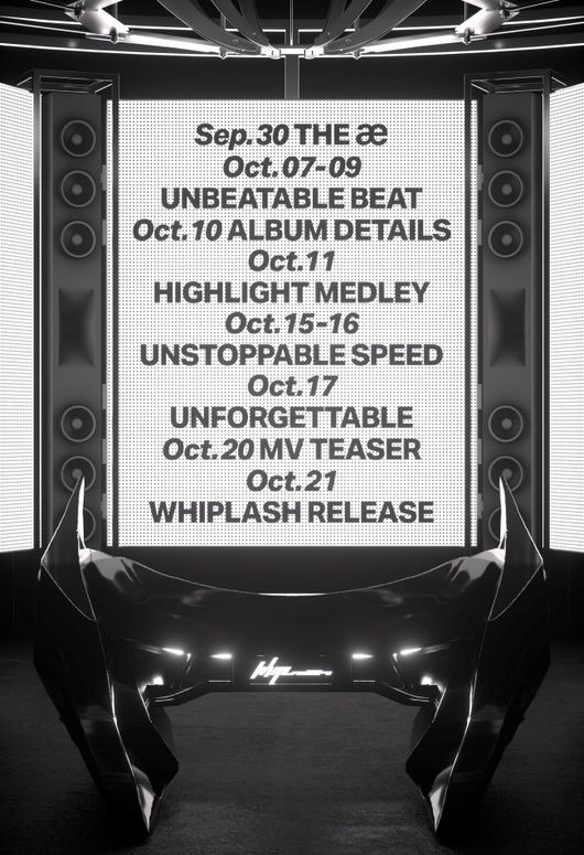 26일 소속사 측은 SNS 공식 계정을 통해 에스파(카리나, 지젤, 닝닝, 윈터) 5번째 미니앨범 'Whiplash' 스케줄 포스터를 공개했다. 스케줄 내용에 따르면 오는 30일부터 순차적으로 티저 영상 및 이미지, 하이라이트 메들리, 뮤직비디오 티저 등 풍성한 콘텐츠를 공개한다.
