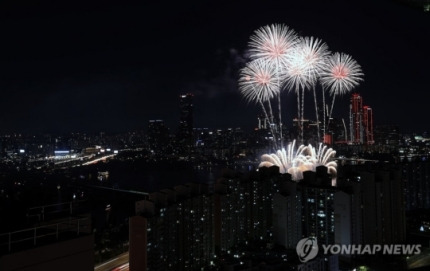 화려한 불꽃들이 서울 한강 위 밤하늘을 형형색색으로 수놓았다.
