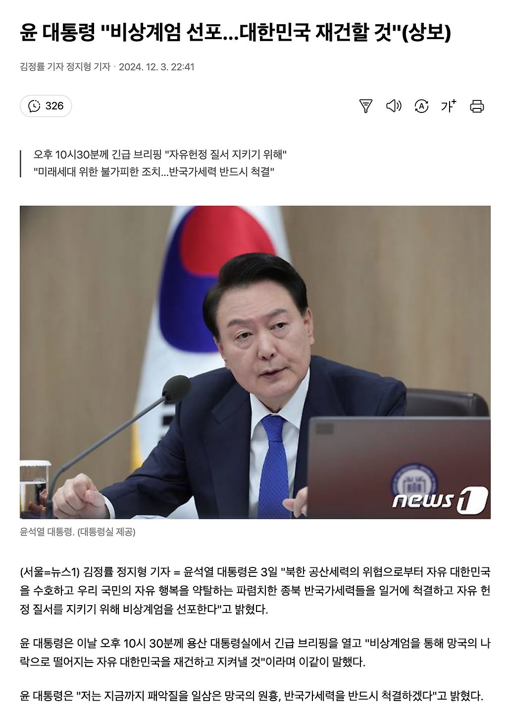 비상계엄선포 선언.. 대한민국 재건??