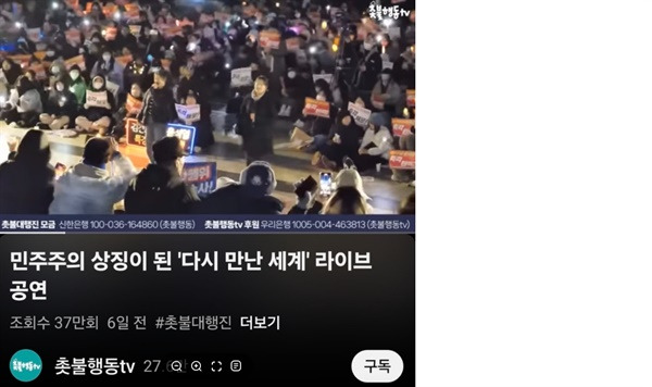 이제 시위나 집회에도 세대 교체가 이루어져 과거 불리던 민중가요 '임을 위한 행진곡'이 아닌 '다시 만난 세계' 노래가 울려 퍼진다.