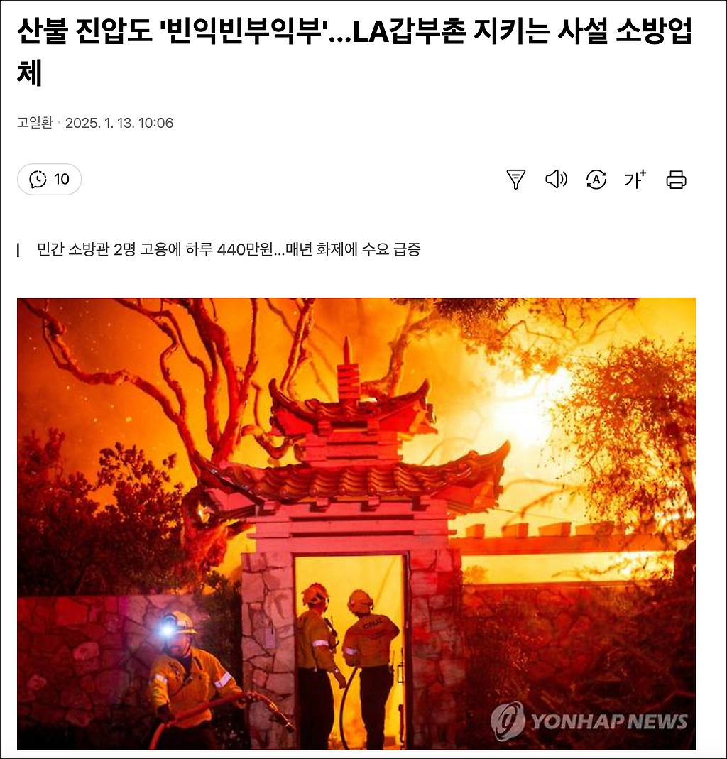 LA에서 산불이 발생하자 일부 부유한 주민들이 시급 300만원에 달하는 민간 소방관을 고용하고 있습니다